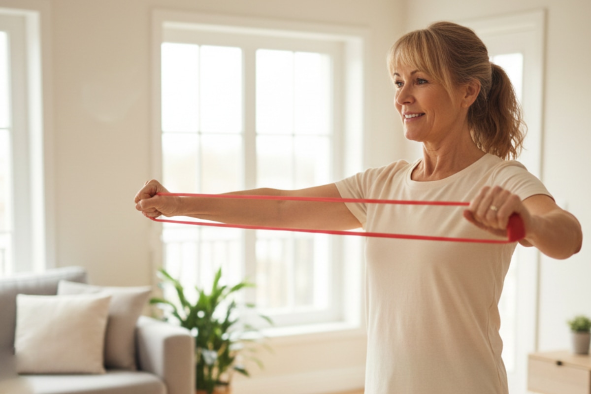 Resistance bands are proof that you don’t need a fancy gym or complicated cable machines to stay strong and fit. They offer a joint-friendly, highly effective way to challenge your muscles and support bone health.(2) Grab your band, check it for safety, and let’s get moving in our next session!